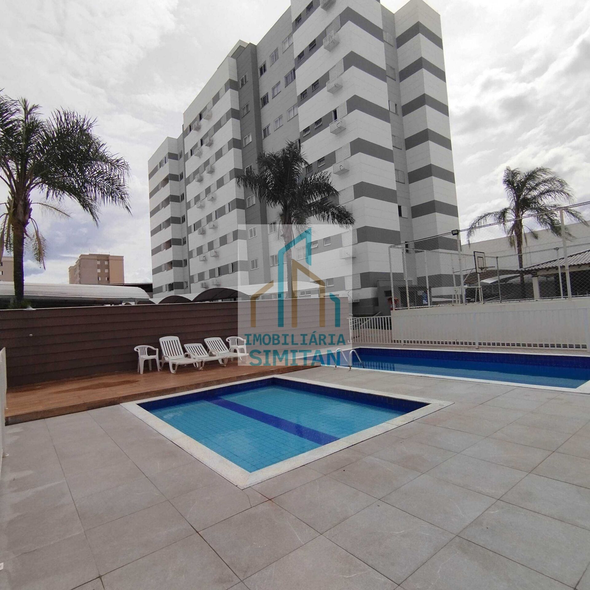 Área de lazer com parquinho, salão de festas, piscina adulto e infantil, quadra poliesportiva e 2 churrasqueiras gourmet, academia e quadra poliesportiva
